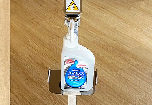 アルコール消毒液の設置(フロント、レストラン、トイレ等館内各所)